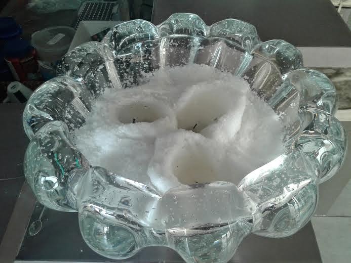 COMO ORNAMENTAR UMA MESA PARA UM JANTAR A LUZ DE VELAS . SAL GROSSO PARA ESPANTAR MAUS OLHADOS